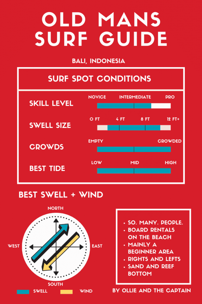 Instead of being in front of the well-known Old Mans Restaurant and Bar, Old Mans Reef is actually situated near the intersection of Jalan Munduk Catu and Jalan Pura Dalem. As of this writing, you are welcome to park for free anywhere along the street. There will be a sizable crowd on the main reef, which you can see directly in front of you.