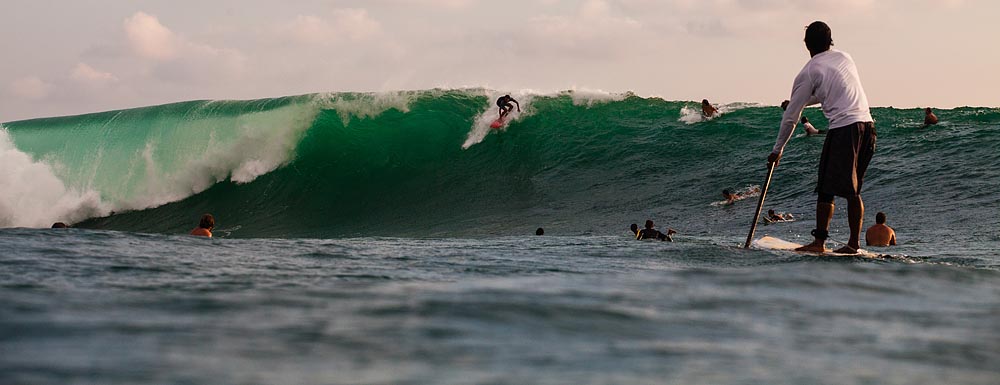 Temples shatter quickly and violently in relatively shallow water. There is typically a smaller crowd here because it takes so long to paddle up the reef, but only advanced-expert surfers are allowed to use it.